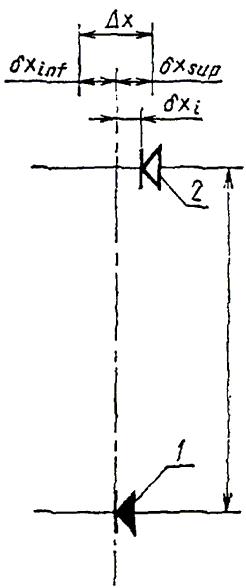 Черт. 11. Допуск совмещения и отклонение от совмещения ориентиров