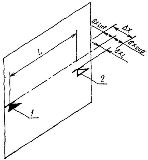 1 - ориентир, принимаемый за начало отсчета; 2 - ориентир устанавливаемого элемента
