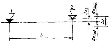 4.3. Допуски совмещения ориентиров принимают по табл. 8 в зависимости от номинального расстояния L между ними.