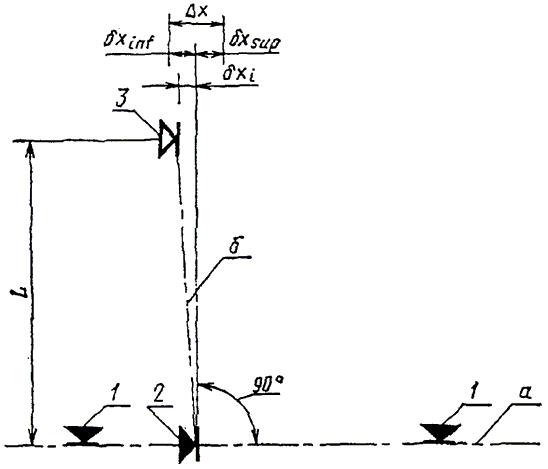 3.1. Точность разбивочных работ характеризуют допусками и предельными отклонениями разбивки точек и осей в плане (черт. 5) и передачи точек и осей по вертикали (черт. 6), допусками створности и предельными отклонениями от створности точек (черт. 7), допусками и предельными отклонениями разбивки высотных отметок (черт. 8) и передачи высотных отметок (черт. 9), а также допусками перпендикулярности и предельными отклонениями от перпендикулярности осей (черт. 10).