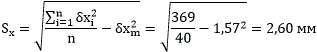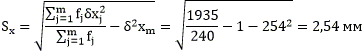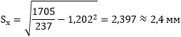 Отклонения, вышедшие за пределы, ограниченные вычисленными значениями и равные +10 мм, +9 мм и -7 мм, были исключены из объединенной выборки как грубые ошибки, после чего в двух последних графах табл. 3 были произведены соответствующие вычисления, определены новые значения сумм и