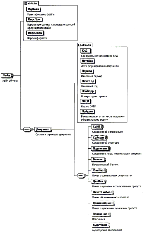 XML схема файла обмена приводится отдельным файлом и размещается на сайте Федеральной налоговой службы.
