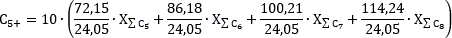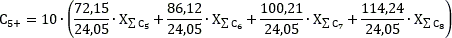 Массовая концентрация углеводородов C5+ г/м3 рассчитывается на основе компонентного состава по следующей формуле: