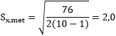Пример. Произвести предварительную оценку точности измерений длинномером длины изделий при контроле точности их изготовления. Измерение длины каждого изделия в процессе контроля будут выполняться при числе наблюдений m=2.