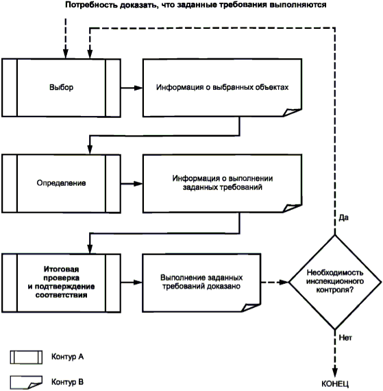 А.1.4 Контур А на рисунке А.1 обозначает функции оценки соответствия. Конкретные виды деятельности в каждой функции могут меняться в зависимости от вида оценки соответствия, основываясь на потребности пользователя, характере заданных требований и объекте оценки соответствия.