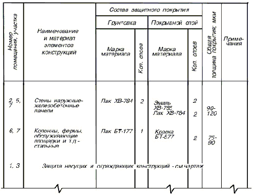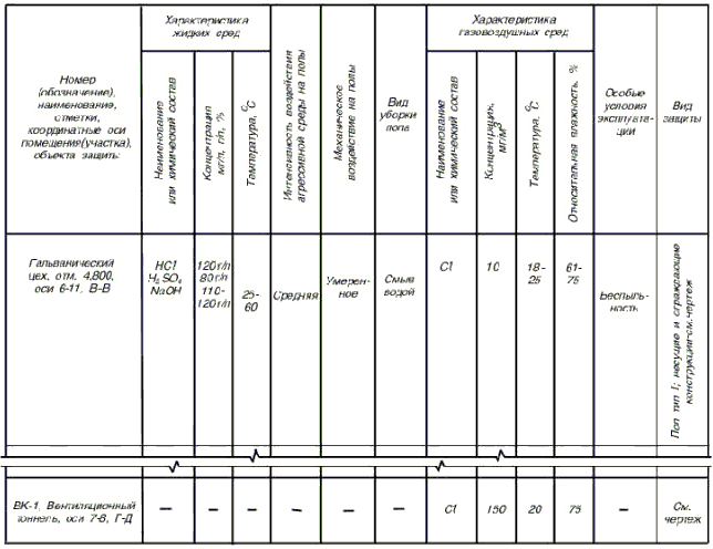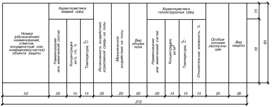 На листе, где помещены планы полов, приводят данные по антикоррозионной защите несущих и ограждающих конструкций зданий и сооружений в таблице по форме 3.