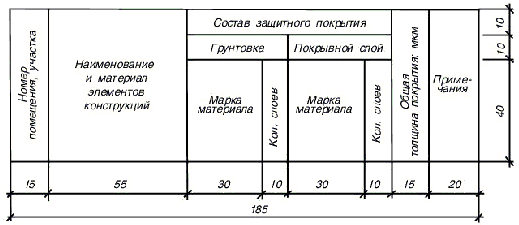 Количество граф зависит от количества объектов защиты и видов защищаемых элементов конструкций.