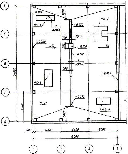 3.5. На планах фундаментов под оборудование, лотков, приямков, каналов, тоннелей и других сооружений указывают: