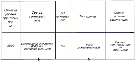 На листе, где помещен план подземных конструкций, приводят гидрогеологические данные в таблице по форме 2.