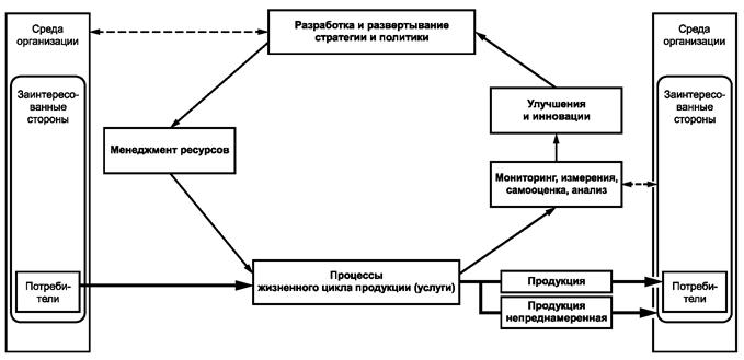 4.3.1. При определении состава и взаимосвязи процессов, необходимых организации для достижения ее целей и постоянного совершенствования деятельности, следует ориентироваться на их укрупненную структуру, основанную на процессном подходе к деятельности организации (см. рисунок 1).