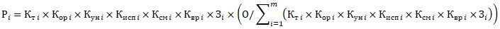 - количество транспортных средств i-го перевозчика, соответствующих по экологическим и техническим нормам безопасности категории многосторонних разрешений, подлежащих распределению;