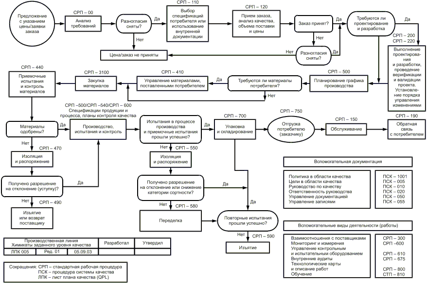 - Пример 2 - Представление плана качества в форме блок-схемы (план качества по обработке материалов);