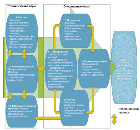 На рисунке 1 показано, что содержание настоящего стандарта отражает внедрение и адаптацию метода PDCA (цикла Деминга) к управлению устойчивым развитием, интеллектуальностью и адаптивностью АТО.