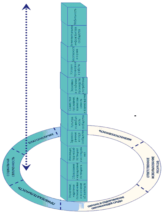Примечание - интеллектуальность интегрирована в процесс устойчивого развития, то есть устойчивое развитие является общим процессом, тогда как интеллектуальность - характеристикой.