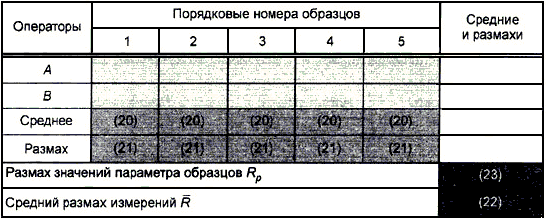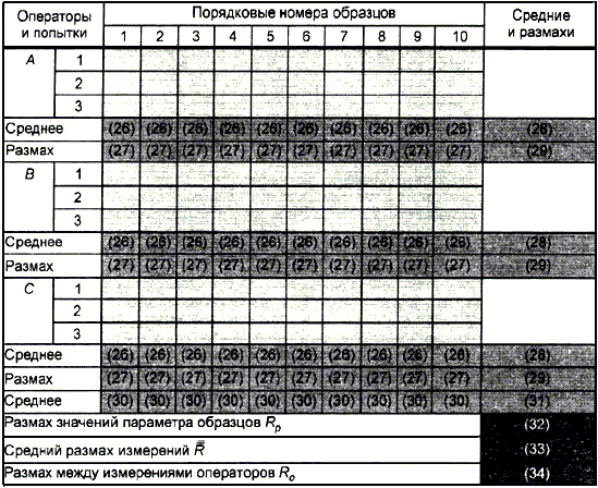 Q - количество измерений (попыток) каждого образца каждым оператором или количество измерений в одном цикле (при исследовании измерительного процесса на стабильность);
