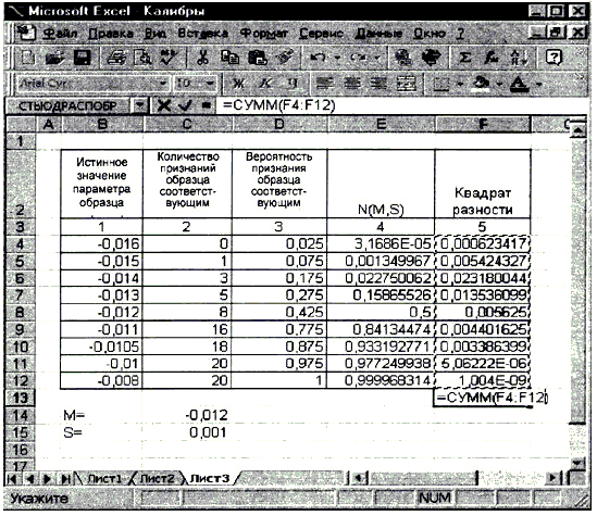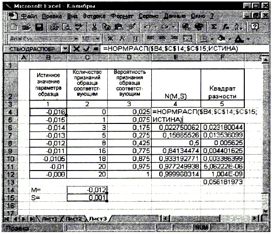 где - номер ячейки, содержащей значения аппроксимирующего нормального распределения и находящейся в той же строке в графе 4 таблицы результатов контроля;