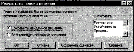 Рисунок Н.8. Диалоговое окно "Результаты поиска решения"