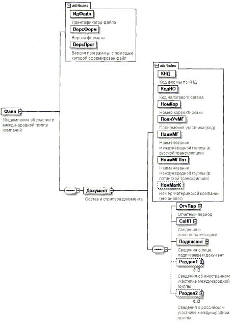 | Полномочия участника в международной группе (код) | ПолнУчМГ | А | Т(=1) | ОК | Принимает значение: 1 - участник международной группы, представляющий уведомление самостоятельно | 2 - материнская компания или уполномоченный участник, представляющий уведомление в отношении других участников международной группы | 3 - иной участник международной группы, представляющий уведомление в отношении других участников международной группы. |
