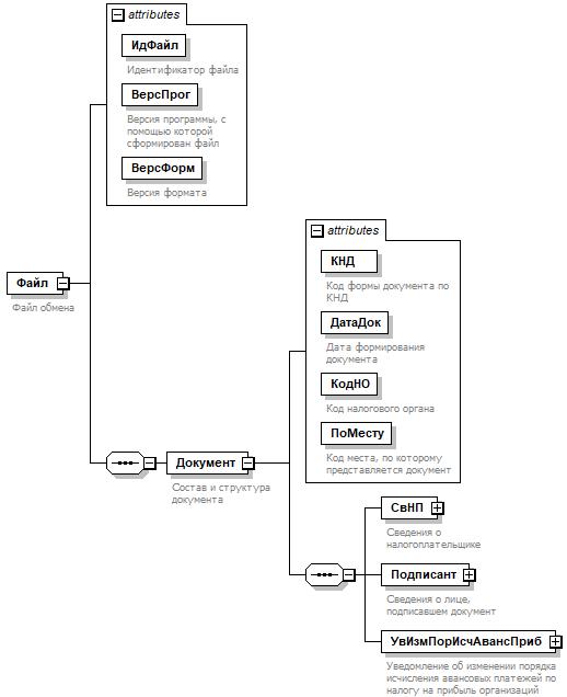 XML схема файла обмена приводится отдельным файлом и размещается на официальном сайте Федеральной налоговой службы.