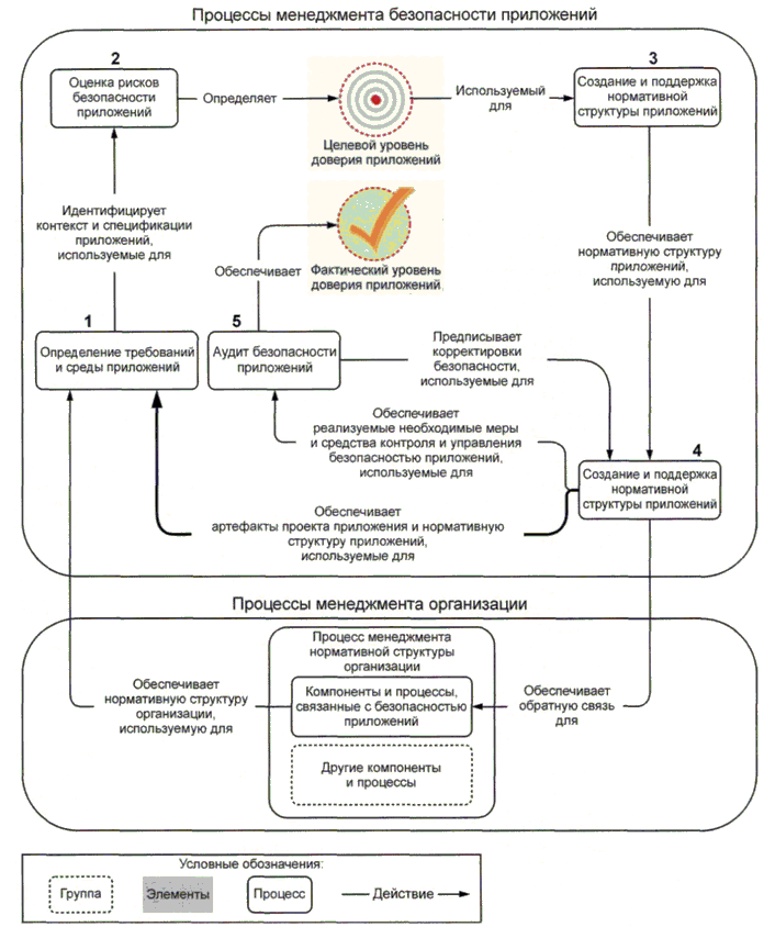 Кроме того, безопасное приложение учитывает требования безопасности, вытекающие из типа данных, целевой среды (бизнес-контекст, нормативный и технологический контексты), действующих субъектов и спецификаций <1> приложений. Должна существовать возможность получения свидетельств, доказывающих, что допустимый или приемлемый уровень остаточного риска достигнут и поддерживается.