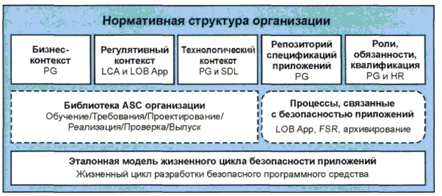 В приложении A представлен пример того, как существующий процесс разработки программных средств можно сопоставить с некоторыми компонентами и процессами ИСО/МЭК 27034. В общем, организация в рамках любого жизненного цикла развития должна выполнить сопоставление, описанное в приложении A, и добавить любые недостающие компоненты и процессы, которые необходимы для соответствия ИСО/МЭК 27034.