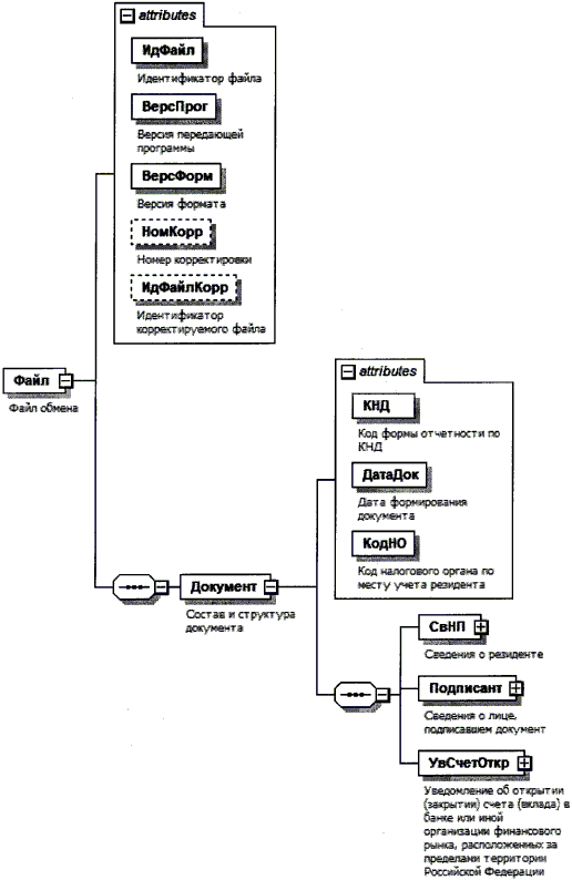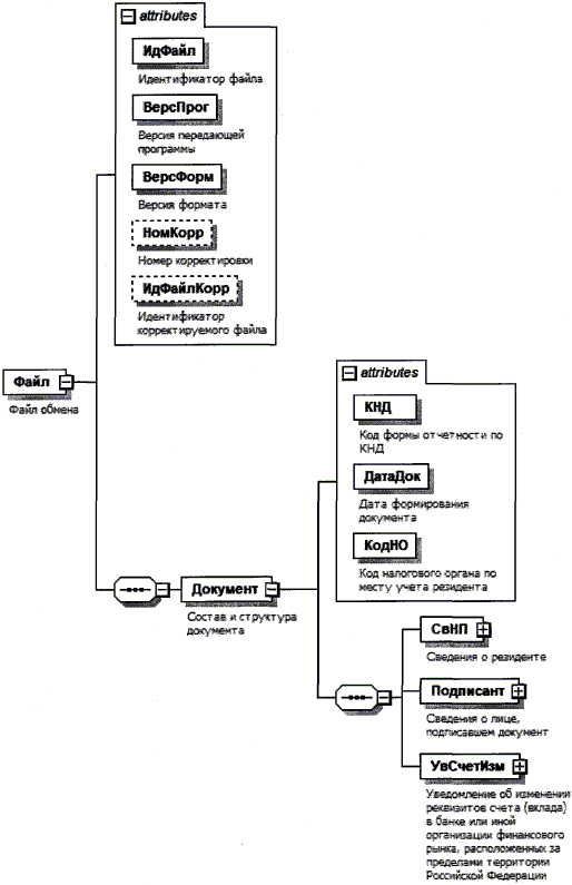 XML схема файла обмена приводится отдельным файлом и размещается на сайте Федеральной налоговой службы.