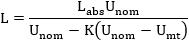 8.2 При наличии отклонения напряжения в сети от номинального измеренную яркость L, кд/м2, приведенную к номинальному напряжению сети , пересчитывают на номинальное напряжение по формуле