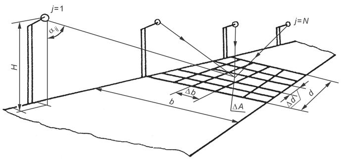 8.1 Среднюю яркость рабочей поверхности или дорожного покрытия, рекламного экрана или фасада здания определяют как среднее арифметическое результатов измерений яркости элементарных площадок [по формулам (1) и (2)].