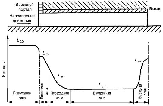Рисунок Д.1 - Яркостные зоны тоннеля