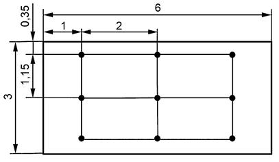 Рисунок Е.1 - Пример расположения контрольных точек на рекламном экране размерами 3 x 6 м при измерении средней яркости