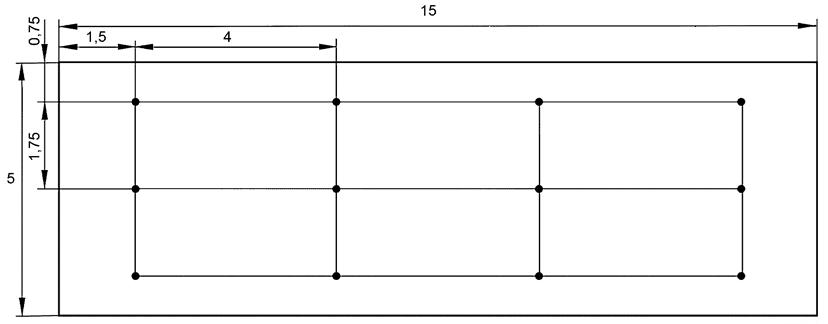 Рисунок Е.2 - Пример расположения контрольных точек на рекламном экране размерами 5 x 15 м при измерении средней яркости