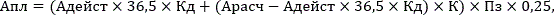 В случае если Арасч > (Адейст x 36,5), квартальная арендная плата (Апл) в рублях, подлежащая перечислению, определяется по следующей формуле:
