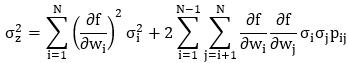- для линейно связанных случайных переменных дисперсия выходной величины является линейной комбинацией дисперсий и ковариаций входных величин, что делает процедуру расчета дисперсии выходной величины достаточно простой, т.е. не требующей применения специальных вычислительных средств.