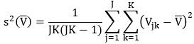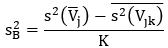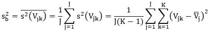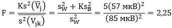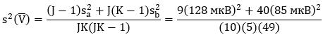 - среднее арифметическое выборочных дисперсий средних арифметических по каждой из m выборок глубин вдавливаний