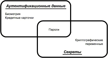 Рисунок 2. Связь между понятиями "аутентификационные данные" и "секреты"