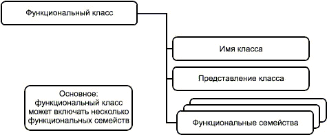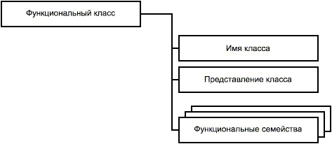 Структура функционального класса приведена на рисунке 3. Каждый функциональный класс содержит имя класса, представление класса и одно или несколько функциональных семейств.