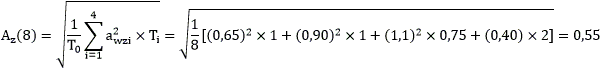 Чтобы облегчить сравнение результатов, полученных для разных операций или рабочих циклов, и оценить влияние каждой такой операции (рабочего цикла) на значение эквивалентного виброускорения A(8), можно вычислить долю эквивалентного виброускорения , приходящуюся на i-ю операцию, по формуле