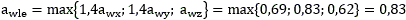 При расчете времени экспозиции, когда значение эквивалентного виброускорения остается ниже некоторого порогового значения, превышение которого сопровождается значительным риском для здоровья работника, необходимо брать максимальное из среднеквадратичных значений корректированного виброускорения по разным направлениям с учетом того, что для направлений x и y применяют корректирующий множитель k = 1,4: