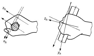 Локальную вибрацию следует измерять в направлении осей ортогональной системы координат, как показано на рисунке 1.