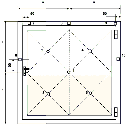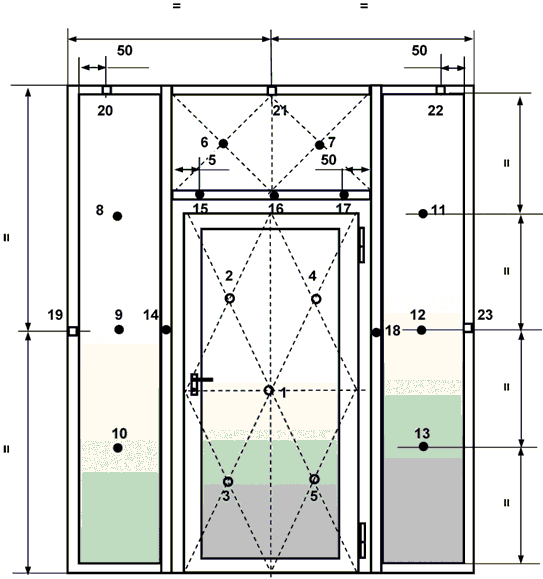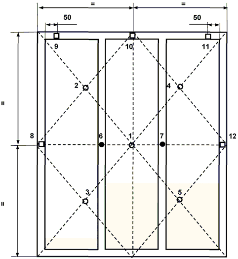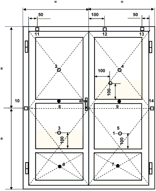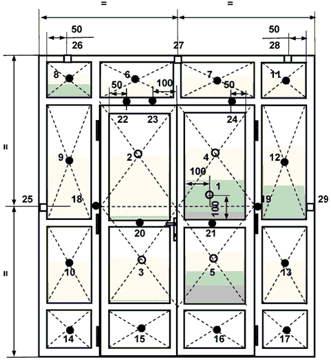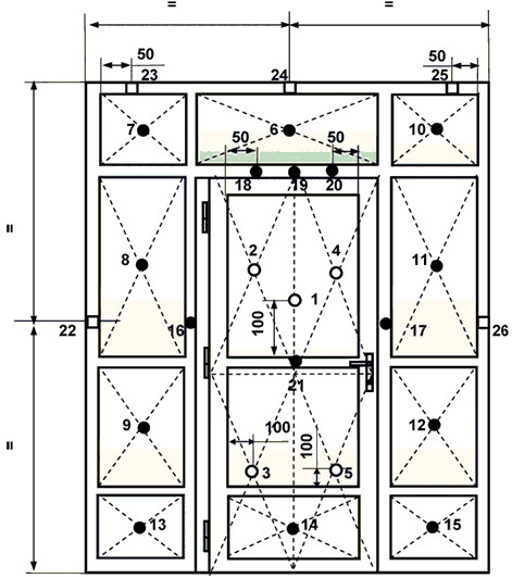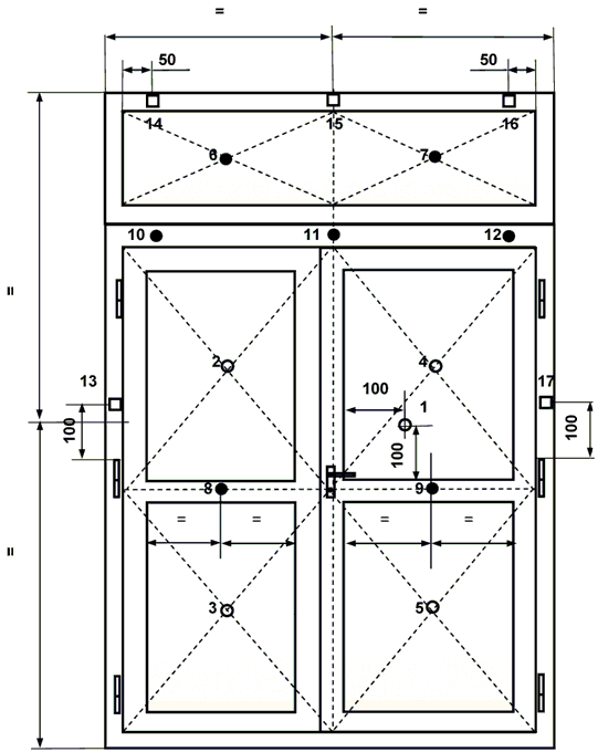 Рисунок А.7. Схема установки термопар на необогреваемой поверхности двухпольного дверного блока