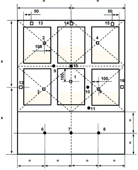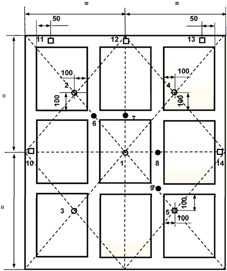 9.8.1. Для определения среднеарифметического значения температуры необходимы следующие условия расположения термопар.