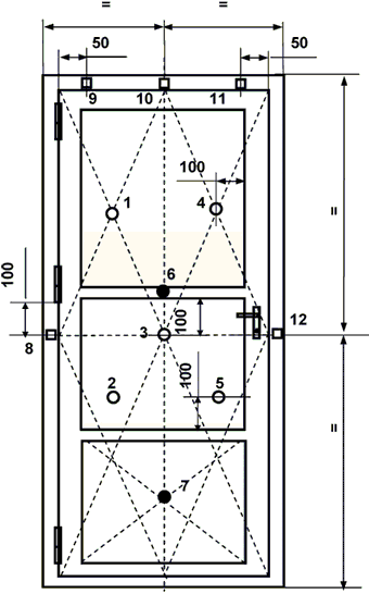 13.4. Результаты испытаний, представленные в отчете (протоколе), действительны для дверей и люков данного типа с отклонениями их габаритных размеров по высоте и ширине от плюс 10% до минус 30% с округлением в сторону увеличения до размера, кратного 50 мм, в сторону уменьшения до размера, кратного 100 мм.
