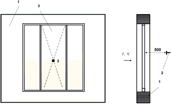 Рисунок В.1. Схема установки приемника потока теплового излучения при испытании на огнестойкость светопрозрачной конструкции