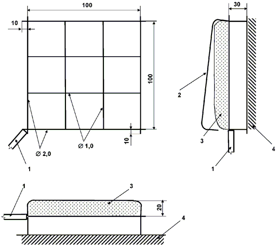 9.8. Для измерения температуры на необогреваемой поверхности образца должны быть установлены термоэлектрические преобразователи (далее - термопары) с классом допуска 2 по ГОСТ 6616-94. Схемы установки термопар на образцах различных типов конструкций приведены в соответствии с Приложением А.
