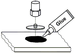 Для установки акселерометра на вибрирующую поверхность можно использовать клей или цемент типа эпоксидной смолы. Чтобы не наносить клей непосредственно на акселерометр, его обычно наносят на шпильку. Не рекомендуется использовать мягкие клеи или воск, поскольку такое соединение ненадежно и не обеспечивает требуемой частотной характеристики.