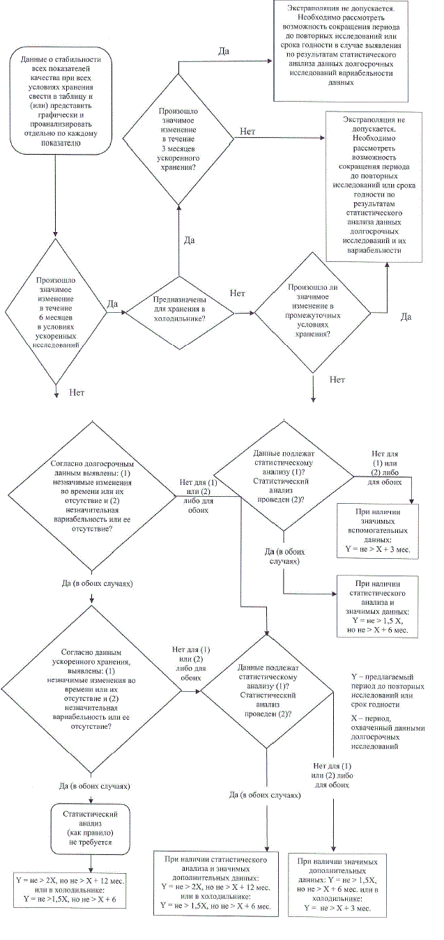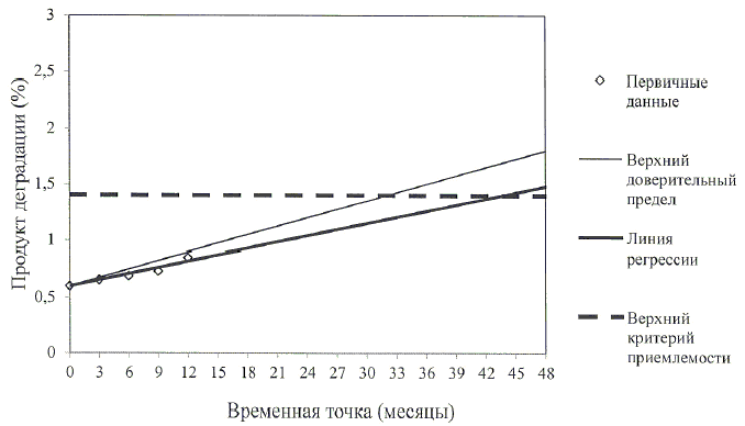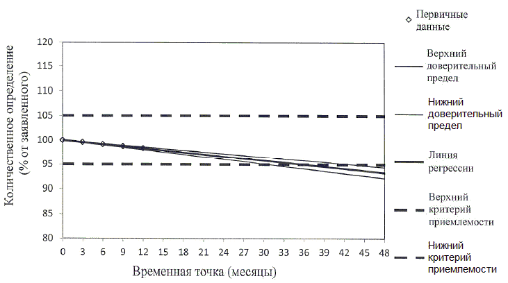 22. В условиях 6-месячного ускоренного исследования следует использовать не менее 3 временных точек, включая начальную и конечную (например, 0, 3 и 6 месяцев). Если исходя из опыта разработки ожидается, что результаты ускоренных исследований, по всей вероятности, будут граничить с критериями значимых изменений, то необходимо провести расширенные исследования путем добавления проб в конечной временной точке либо путем включения четвертой временной точки в протокол исследования.