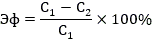 Пример: Расчет эффективности определяется соотношением разницы концентраций веществ до и после технологического этапа водоподготовки к исходной концентрации в природной воде согласно формуле (1).