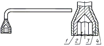 1 - проводящая часть; 2 - рабочая часть; 3 - изоляция; 4 - зона контакта