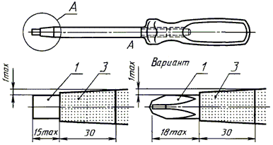 3.12 [3.2.1.1]. Допускаются следующие размеры неизолированных поверхностей рабочих частей отверток и ключей (рисунок 1):