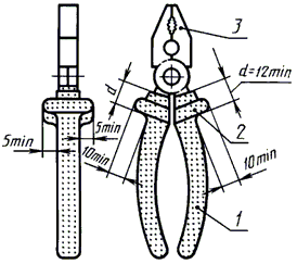 Рукоятки следует закрепить так, чтобы они могли противостоять кручению. Плоскогубцы, круглогубцы и кусачки должны выдерживать крутящее усилие 50 Н x м без видимой остаточной деформации.